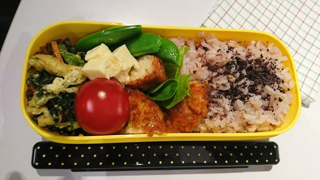 こちら、パート先のデスクで一人で食べていた時の、誰にも見られない環境でのお弁当なので、中身はなんでも良かったものです。